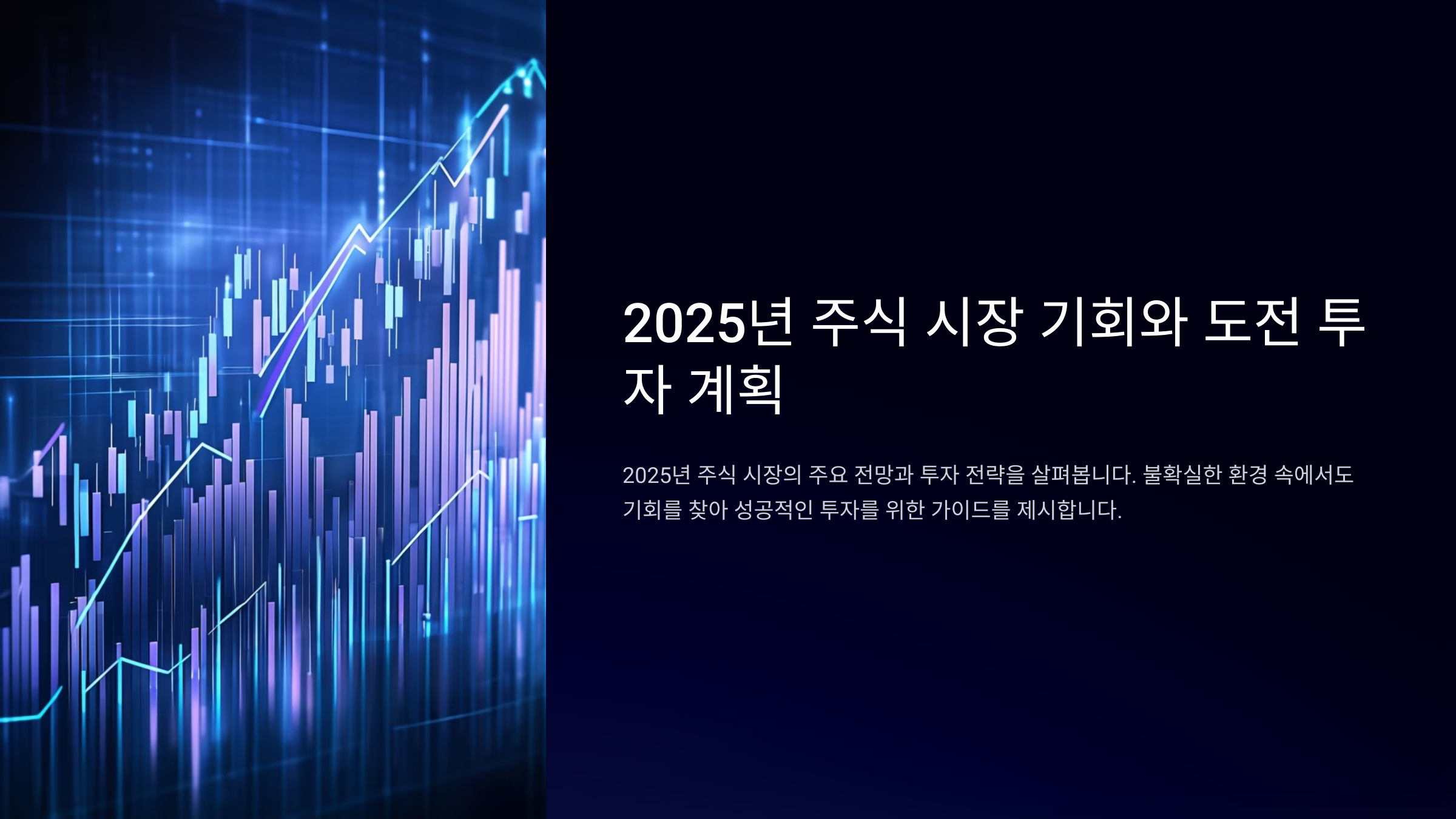 2025년이 다가오면서 주식 시장의 변화에 대해 고민하고 있습니다. 세계 경제 환경은 여전히 복잡하고 불확실성이 크지만, 철저한 분석과 준비를 통해 이러한 환경에서도 기회를 찾아가고자 합니다. 이 글에서는 제가 파악한 2025년 주식 시장의 주요 전망과 이에 따른 투자 전략을 정리해보았습니다.