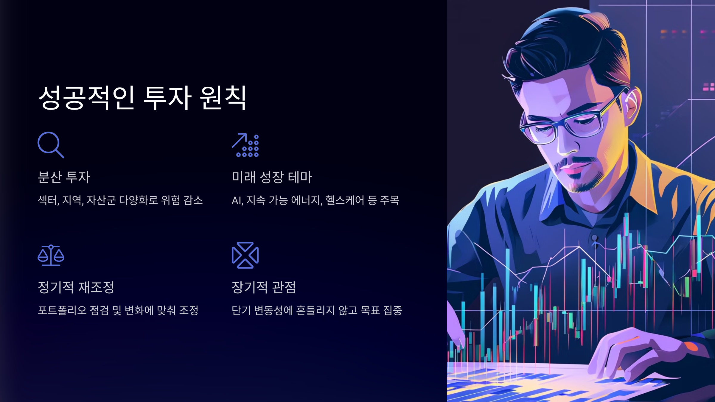 • 분산 투자: 섹터, 지역, 자산군을 다양화하여 위험을 줄입니다.
