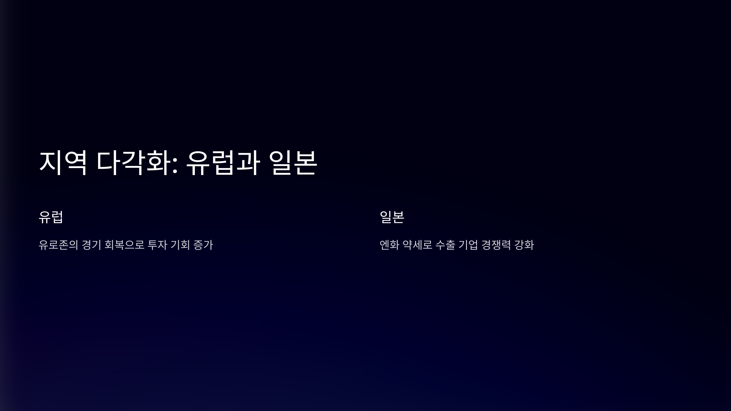 • 유럽과 일본: 유로존의 경기 회복과 일본의 엔화 약세는 좋은 투자 기회를 제공합니다.