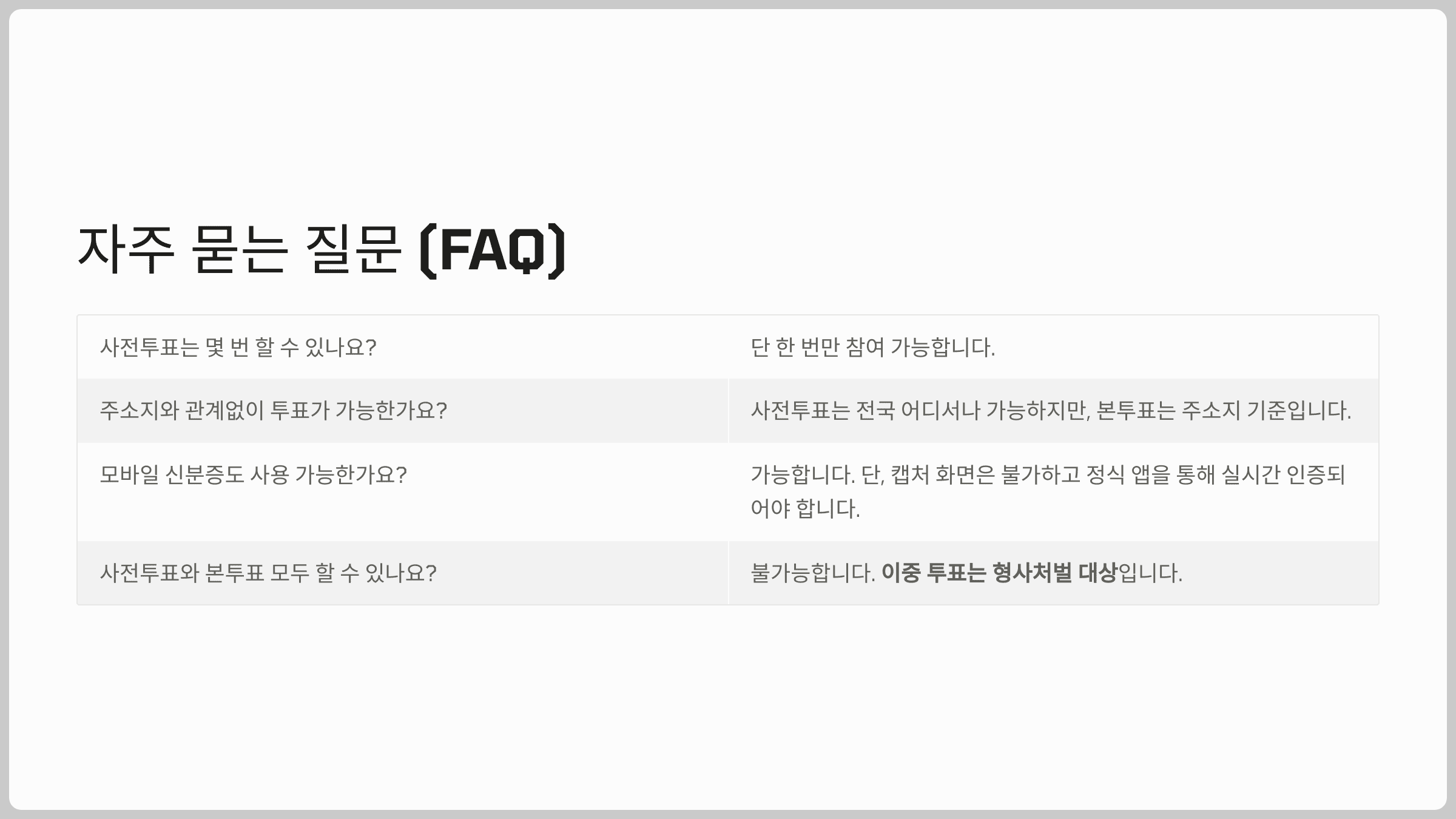 → 복수 기표, 낙서 등은 모두 무효표 처리되므로 주의가 필요합니다.