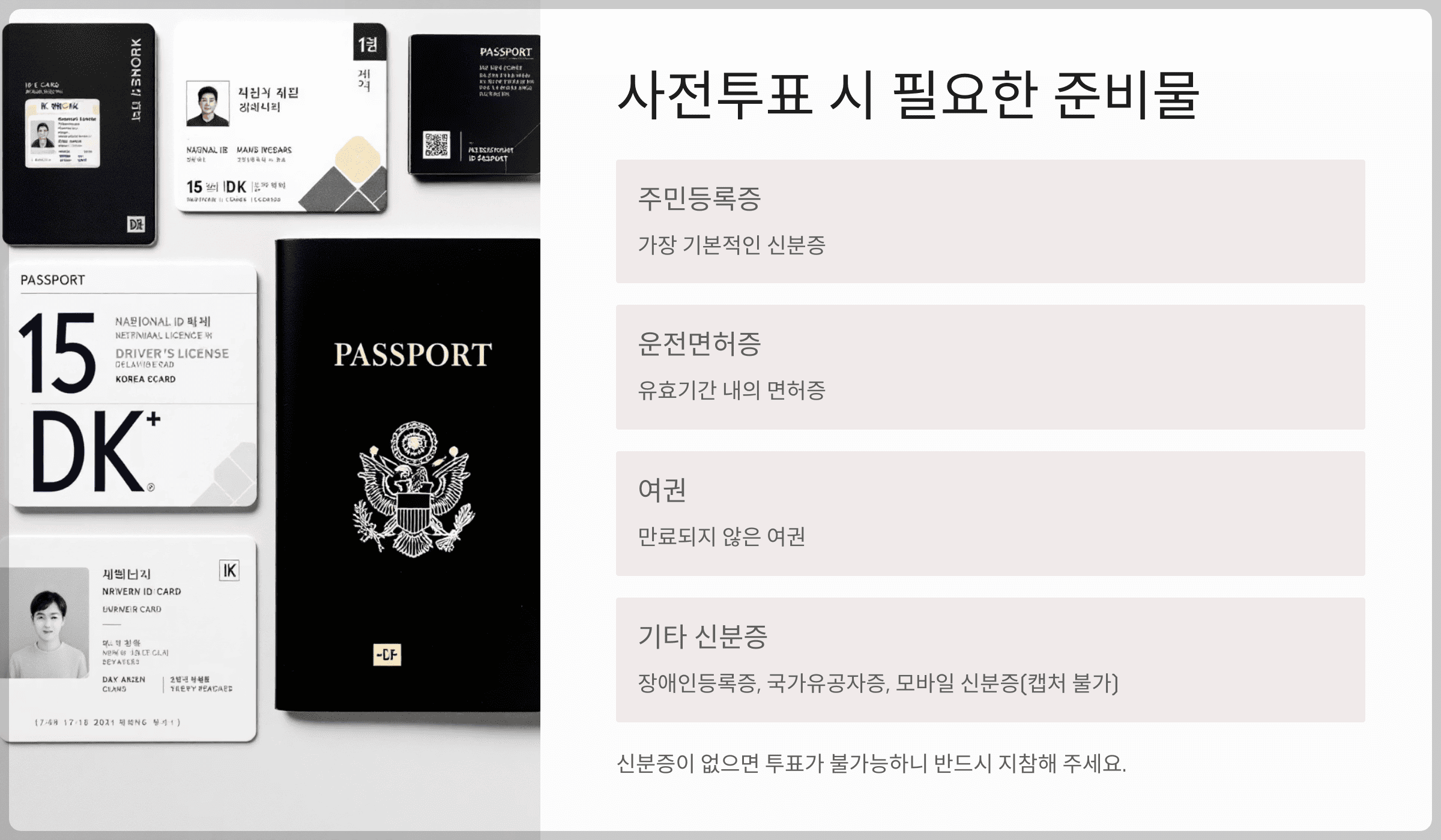 신분증이 없으면 투표가 불가능하니 반드시 지참해 주세요.