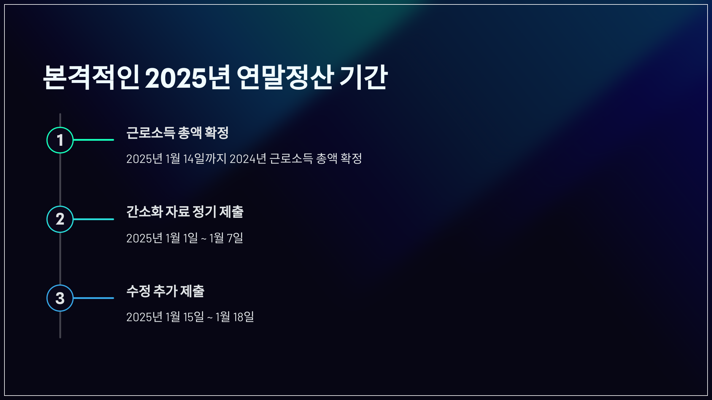 2025 연말정산 기간 및 일정, 주요 변경사항입니다.