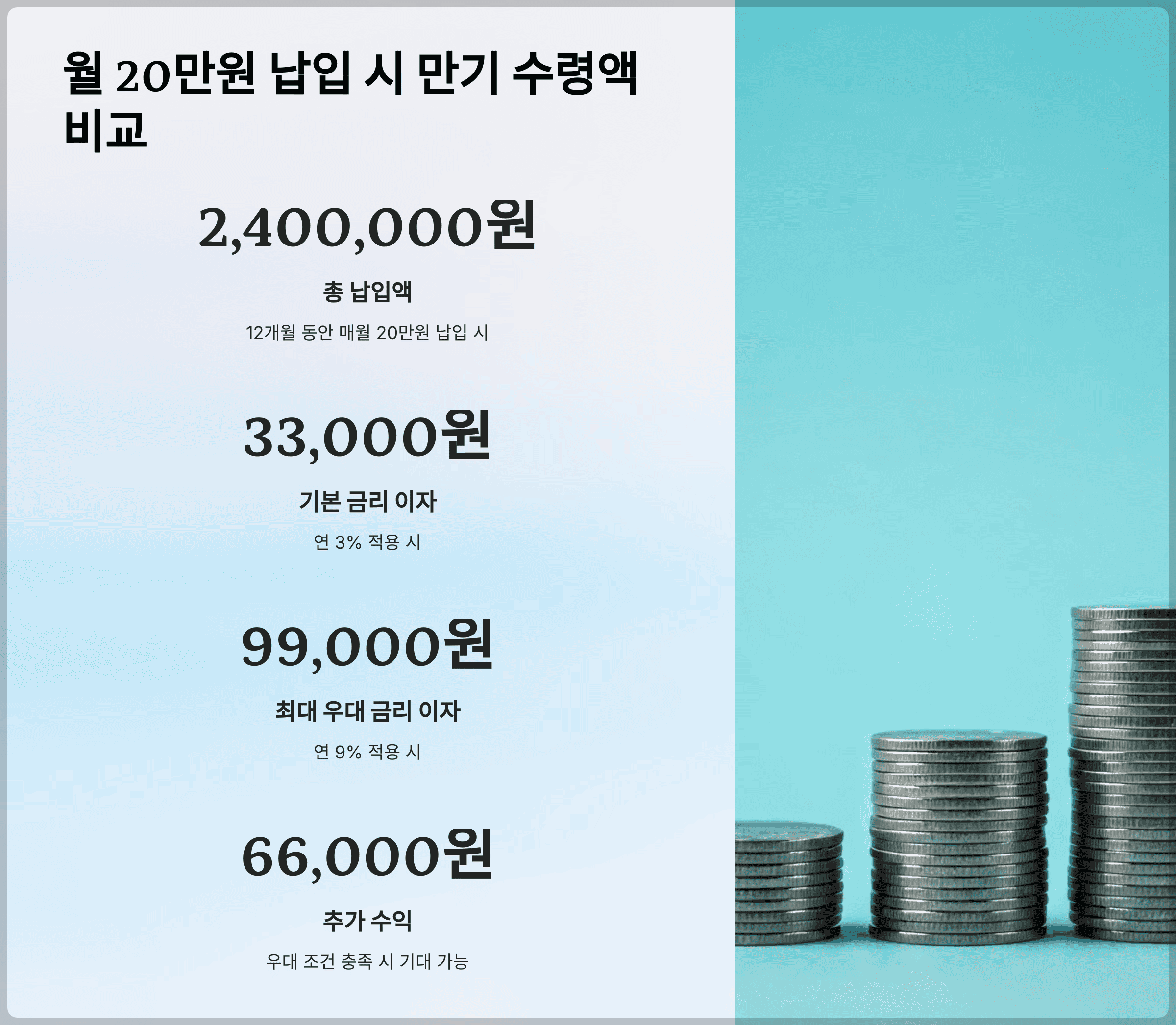 📈 월 20만 원 납입 시 만기 수령액 비교