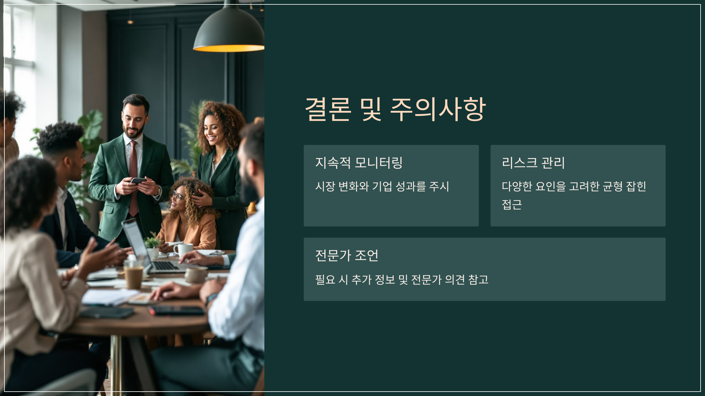 - 분기별 실적 발표 및 기술 도입 속도 모니터링을 통한 지속적 평가 필요.